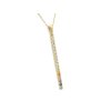 Elegantní náhrdelník s podlouhlým přívěskem, který poutá pozornost čistou linií a harmonickou kombinací drahokamů. Horní část tvoří deset diamantů, spodní část doplňuje šest barevných safírů, poskládaných v jemném duhovém přechodu. Všechny kameny jsou precizně osazeny v tenkém profilu z 14kt žlutého zlata (Au 585/1000).